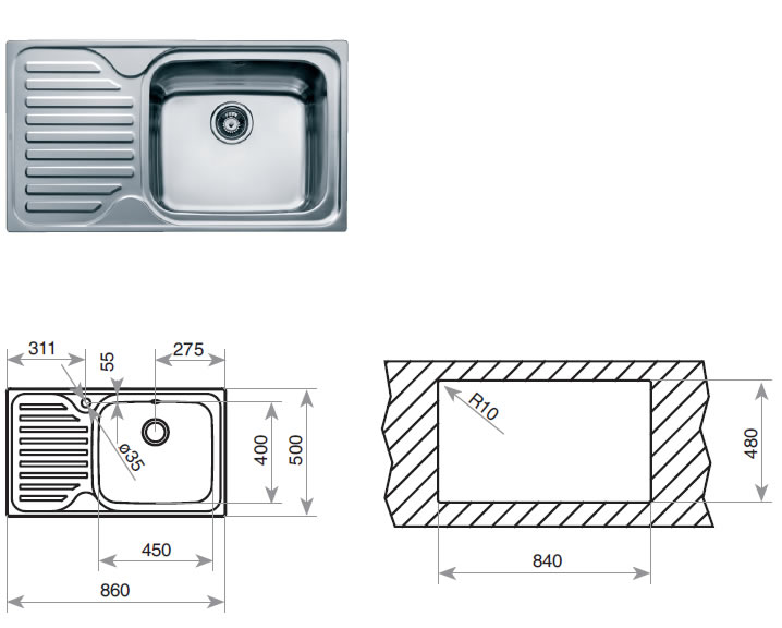 • Без отвор за чешма